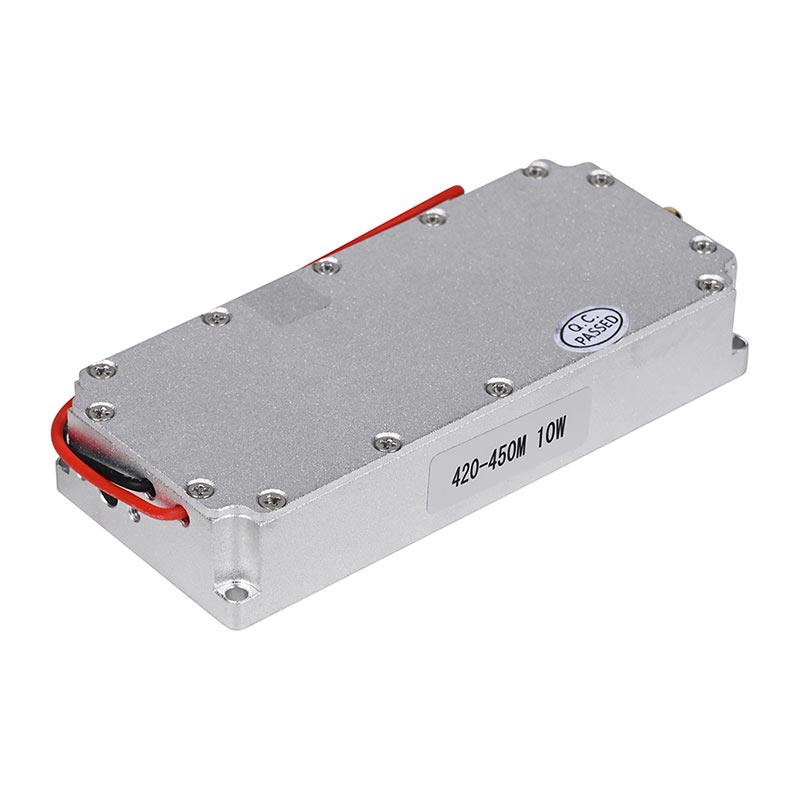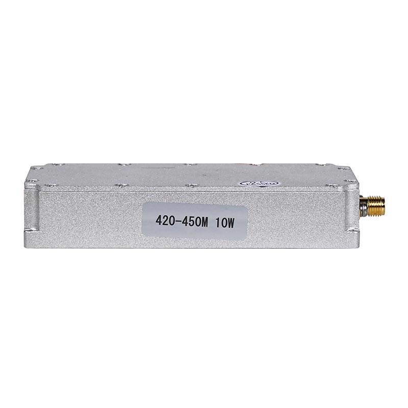 Kompaktowy i mocny moduł przeciw dronom o mocy 10 W to wzmacniacz mocy RF, który może skutecznie przeciwstawić się dronom w różnych pasmach częstotliwości, takich jak 433 MHz, 900 MHz, 1,2 GHz, 1,5 GHz, 2,4 GHz i 5,8 GHz. Dzięki napięciu zasilania 27–28 V prądu stałego i stałej mocy wyjściowej 10 W gwarantuje niezawodną interakcję z niezatwierdzonymi dronami. Do ważnych cech należy szeroki zakres temperatur pracy od -20°C do 80°C, złącza SMA zapewniające niezawodną komunikację radiową oraz lekka konstrukcja ważąca 105–109 g. Moduł ten jest niezbędnym instrumentem do ochrony przestrzeni powietrznej i eliminowania zagrożeń ze strony dronów w różnych ustawieniach ze względu na jego doskonałą wydajność i możliwości adaptacji.